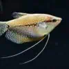 Hier handelt es sich um eine Zuchtform des Blauen Fadenfisches. Trichopodus trichopterus war lange unter dem Namen Trichogaster trichopterus im